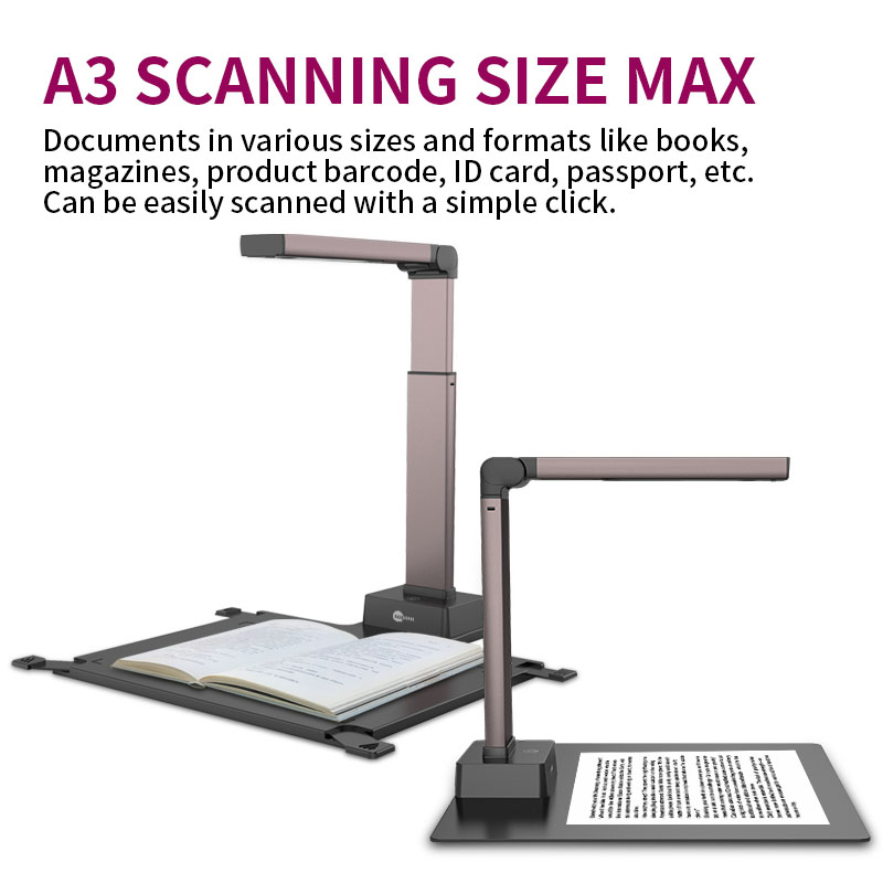 Professional 18MP OCR Book Scanner Digital High Resolution A3 Portable Document Camera for Multimedia Learning Displaying